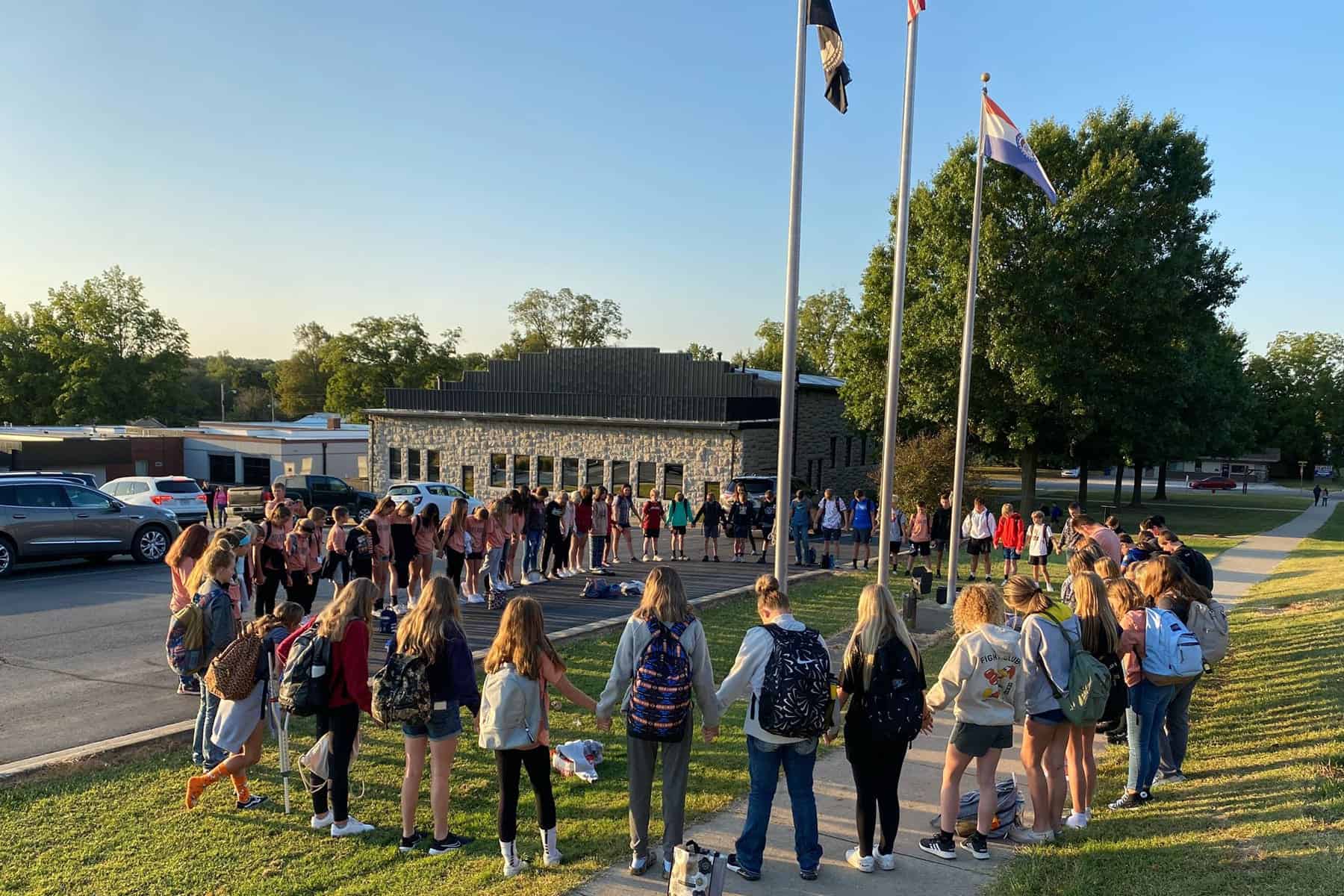 Because the rallies are organized and led by students, each one looks a little different. Some groups pray out loud together in one big circle around their school flagpoles. Others break into smaller groups of three or four students to pray together. Sometimes, scripture is read aloud, and other times, there is a period of worship led by a student playing the guitar.