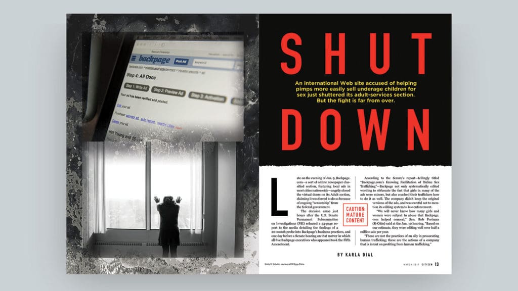 There’s an evil in our midst: Selling children for sex. For years, we’ve known about this—but generally only thought it takes place in other countries....