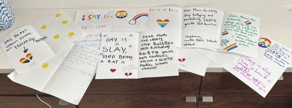 Moms for Liberty, a parental rights activist group, posted a tweet showing mail it had received from Seattle middle school students urging the organization to...