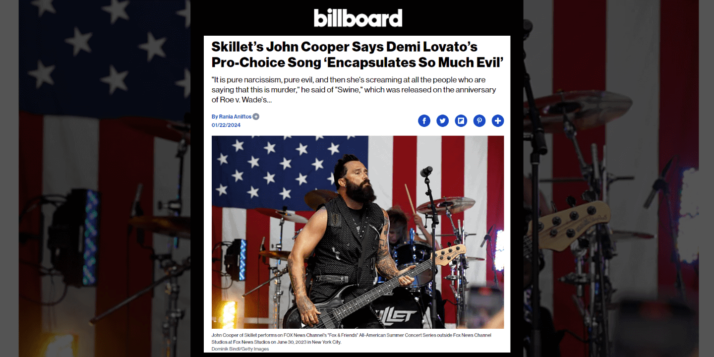 Cooper caught Billboard’s attention when he used pop-star Demi Lovato’s pro-abortion anthem, “SWINE”, to illustrate the kinds of evil ideas perpetuated by public figures.