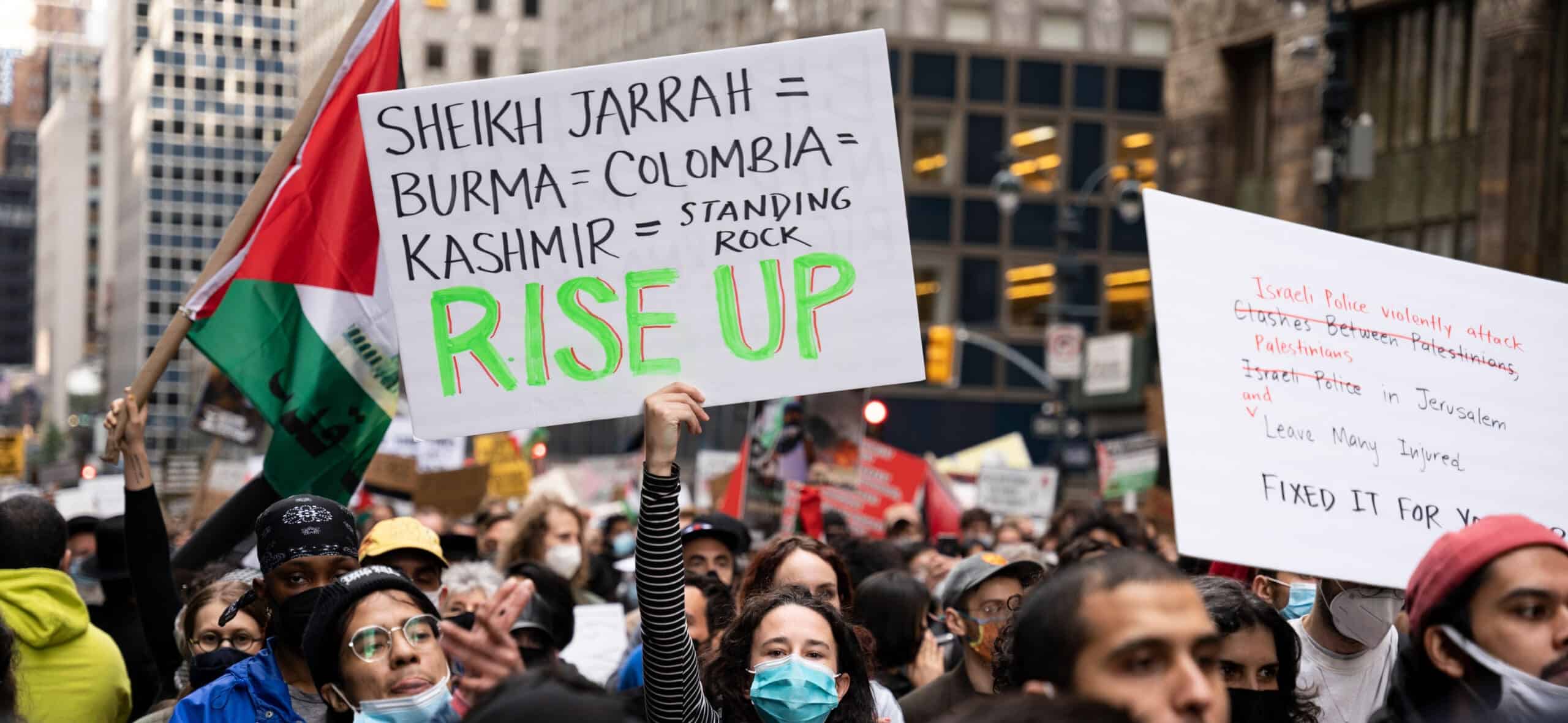 - “1,2,3,4, open up the prison doors. 5,6,7,8, end the settler Zionist state.