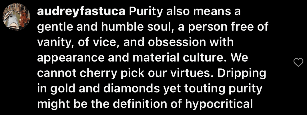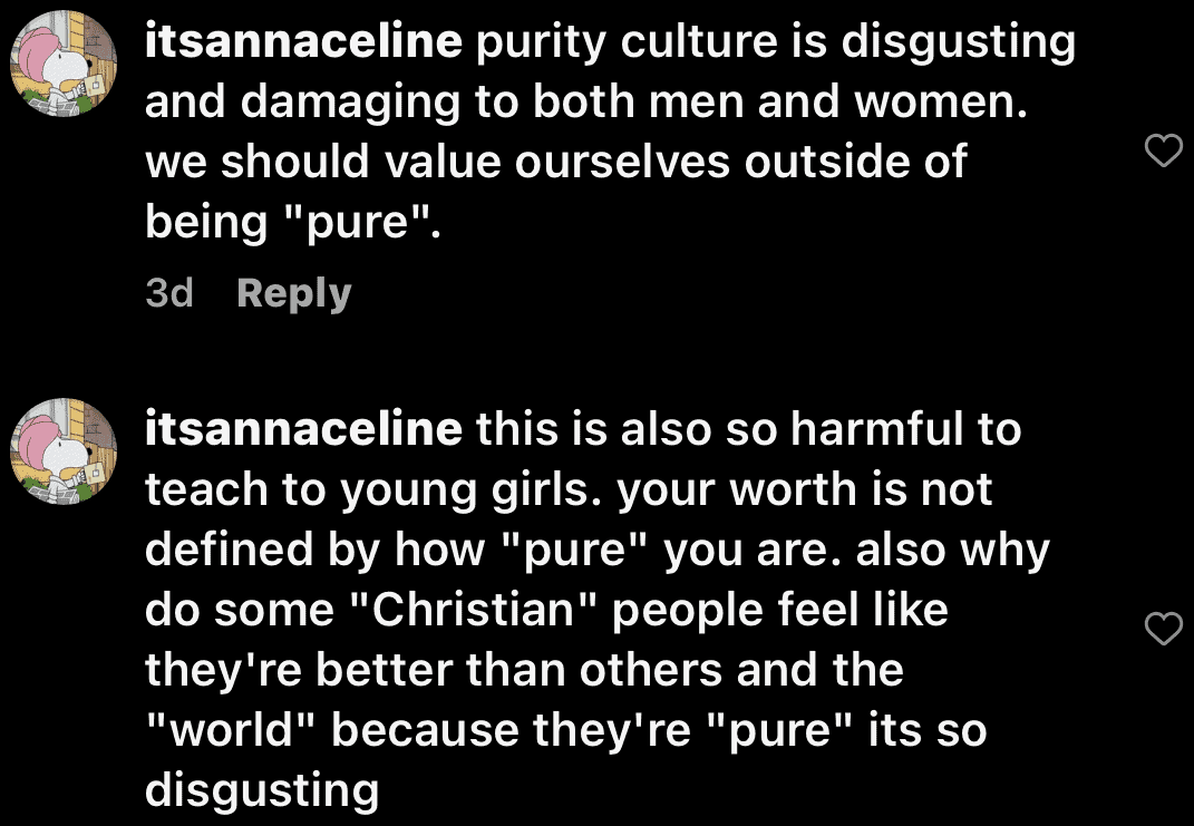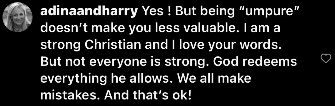 Many commenters equated Pruett’s post with judgement of those who haven’t practiced abstinence. They feel purity is a personal choice — and that God — in His infinite love and grace, will forgive our sins: