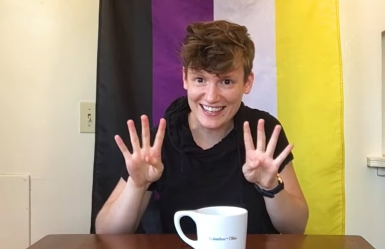 The slides included “8 Tips for Being Nonbinary!” a video from a “non-binary producer” named “Laurenzo” who has 889 thousand followers on TikTok and 54 thousand followers on Instagram.
