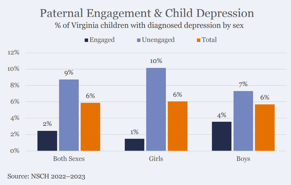 Greater fatherhood engagement also has a dramatic impact in reducing depression in children.