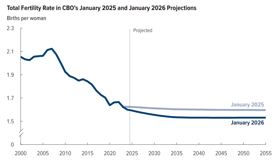 U.S. fertility has been falling to deeply concerning historic lows and according to a new Congressional Budget Office (CBO) report, that decline is expected to worsen in the coming decades.