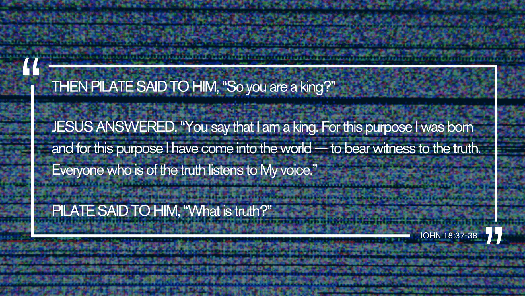 Though the world feels like it’s entering new echelons of delusion, the inability to identify or hold on to objective truth — or confusion — isn’t unique to our technology-saturated era. Consider this brief exchange between Pontius Pilate and Jesus, moments before the Roman governor found Him innocent of the Sanhedrin’s charges.