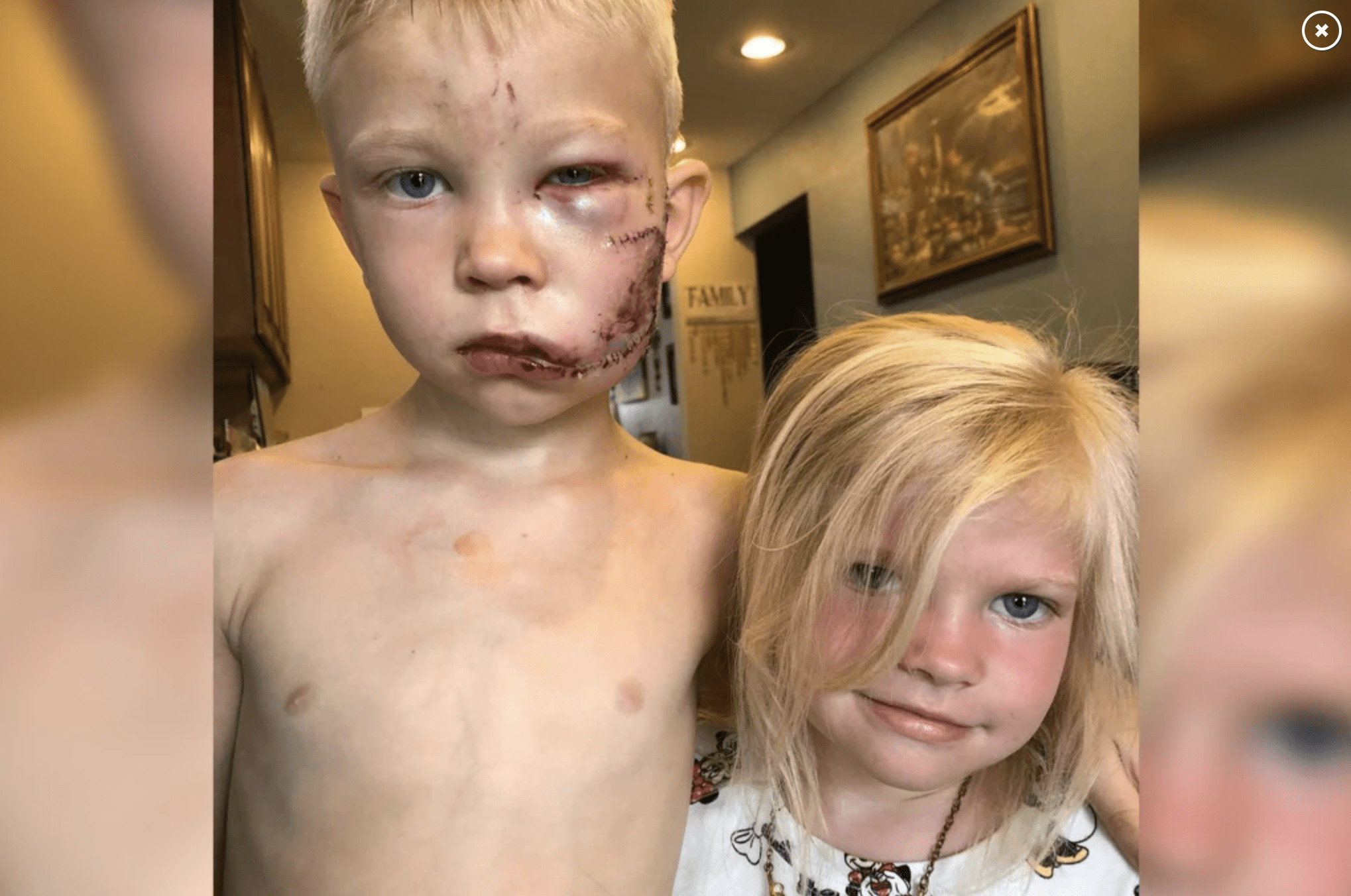 The owner of the German shepherd mix was able to gain control over the dog and Bridger was taken to the hospital where he underwent a two-hour surgery and received 90 stitches on his cheek.