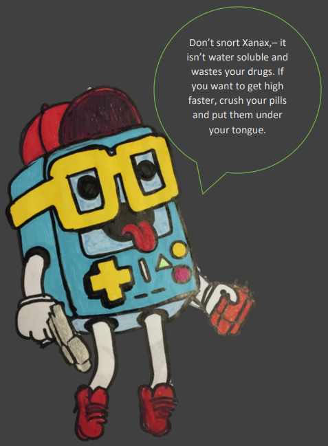 HRAC’s online resources are similarly egregious. The organization’s booklet on benzodiazepines begins with a cartoon video game instructing readers via a lime green speech bubble: