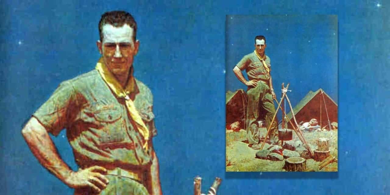 Rockwell always painted from photographs. The scoutmaster featured in that classic illustration was a real one. His name was Marshall Ammerman. He was from a troop in New Jersey, but Rockwell found him at the National Jamboree, which was held that year in Irvine Ranch, Calif.