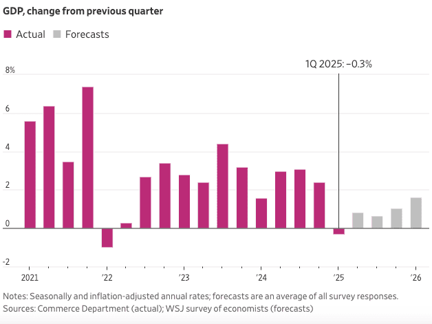 The U.S. economy contracted in the first quarter of 2025, increasing worries about a potential recession.