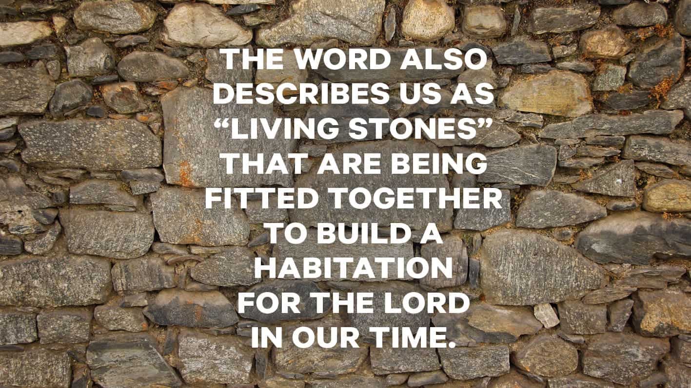 The Word also describes us as “living stones” that are being fitted together to build a habitation for the Lord in our time. In stonework, each rock is selected for the place in the wall where it best fits (though sometimes rough edges do need to be sanded off).